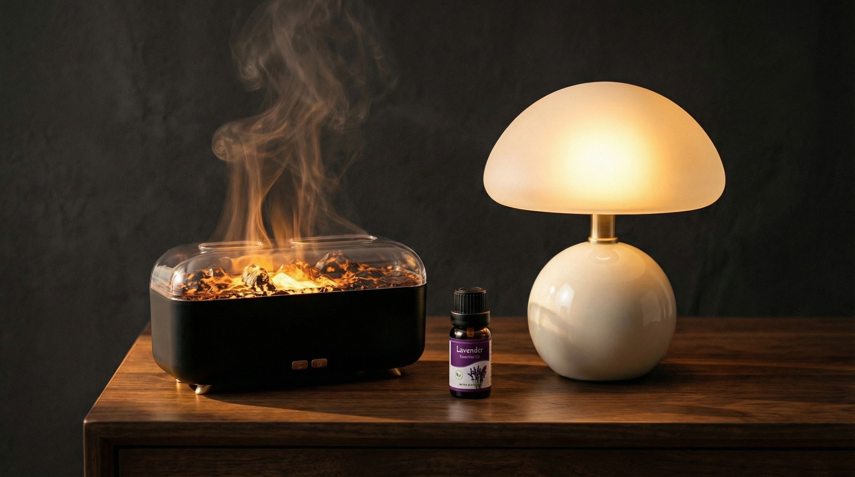 The Dusklight Evening Set brings together three of our most loved pieces into one complete ambient experience. The Dusklight Mushroom Lamp casts a wide, diffused warmth across your space while the Ember Flame Diffuser fills the air with your chosen essential oil - its hypnotic volcanic glow dancing quietly beside you. Together they don't just light a room. They transform it.